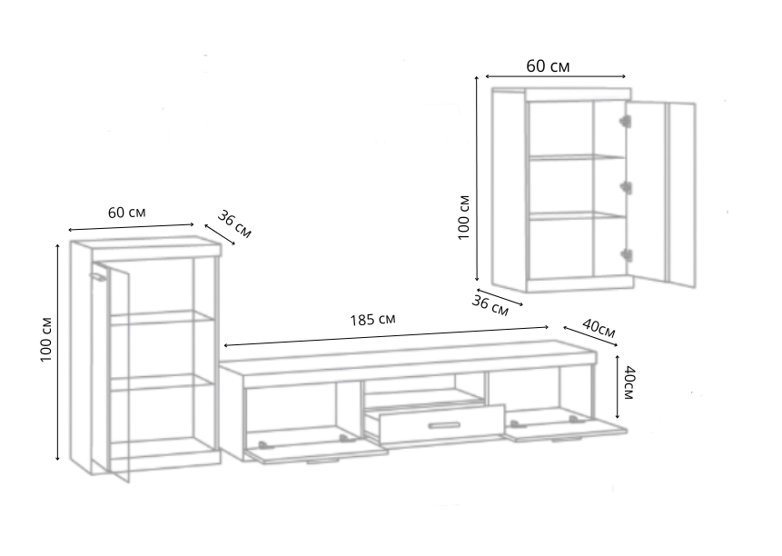 (Ширина: 60см /Высота: 100см /Глубина: 36 см)