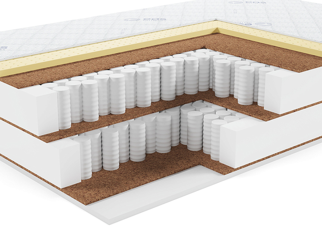 | Материал | Латекс, Блок независимых пружин, Чехол, FoamLux, Кокосовое волокно, Латексированная кокосовая плита, Усиление по периметру матраса |