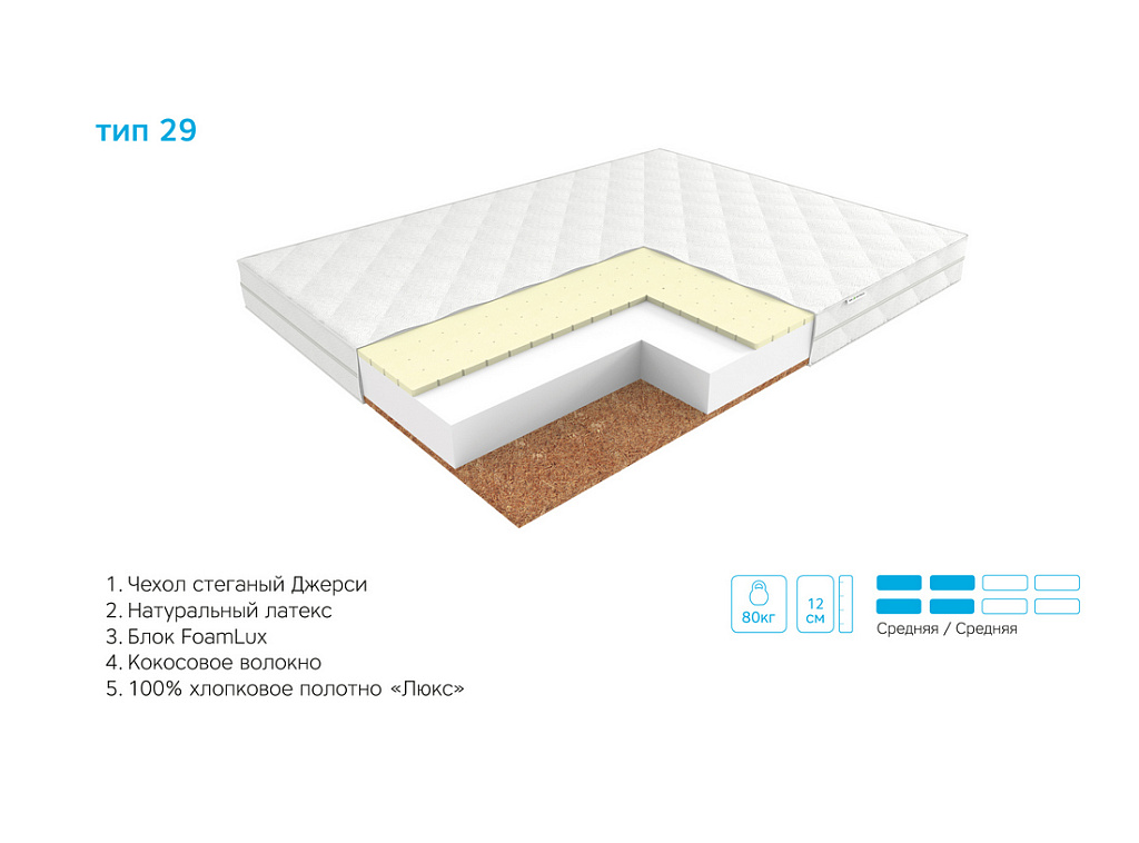 | Материал | Латекс, Хлопковое полотно, Чехол, FoamLux, Кокосовое волокно |