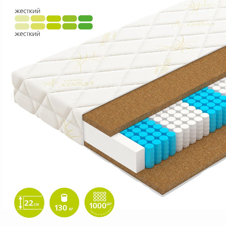 Максимально жесткая модель в коллекции. Плиты кокосовой койры, расположенные по обеим сторонам матраса, обладают комфортным уровнем жёсткости. Простая и прочная конструкция для здорового сна.