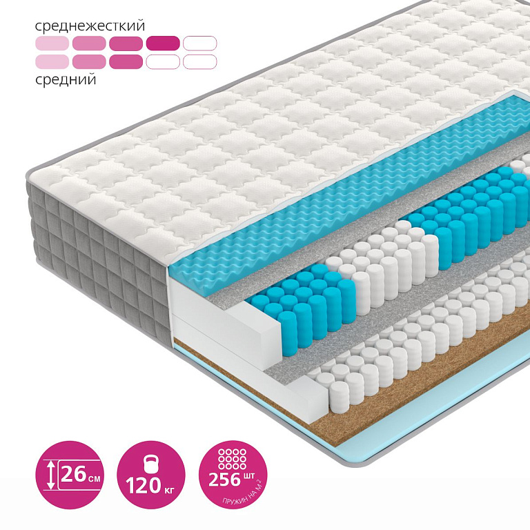 | Кокосовая койра | Натуральный и экологичный материал, природные качества которого усовершенствованы с помощью современных технологичных решений. Расположенные определенным образом волокна кокоса повышают упругость матраса, улучшают его ортопедические свойства и поднимают комфорт на абсолютно новый уровень. |