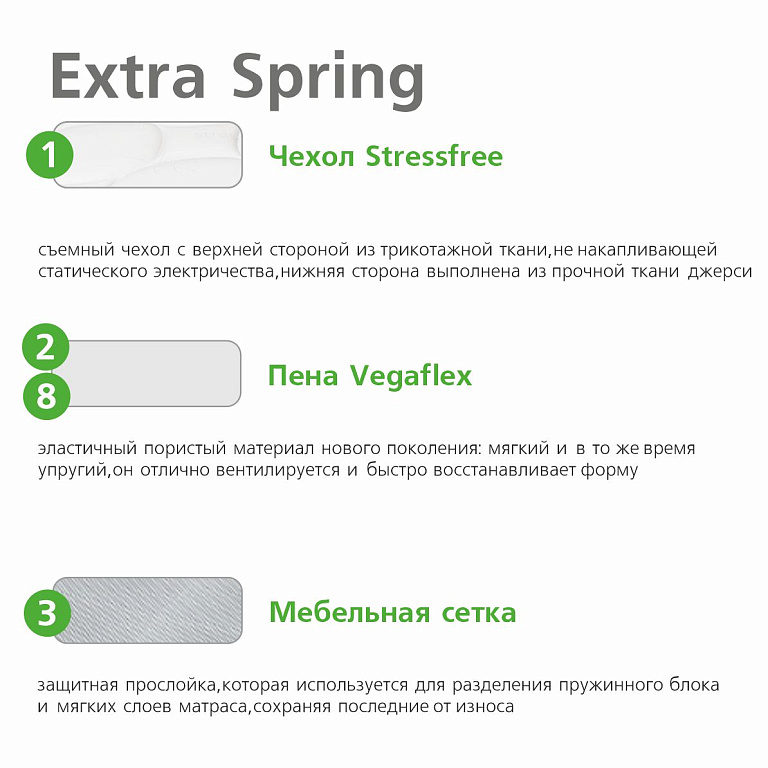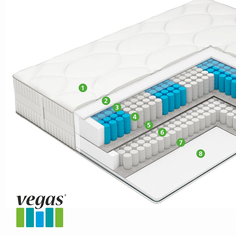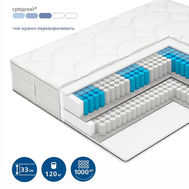 Высокий односторонний "двухэтажный" матрас с 7-зонным блоком независимых пружин и изысканным чехлом. Качество отдыха, как в дорогом отеле!