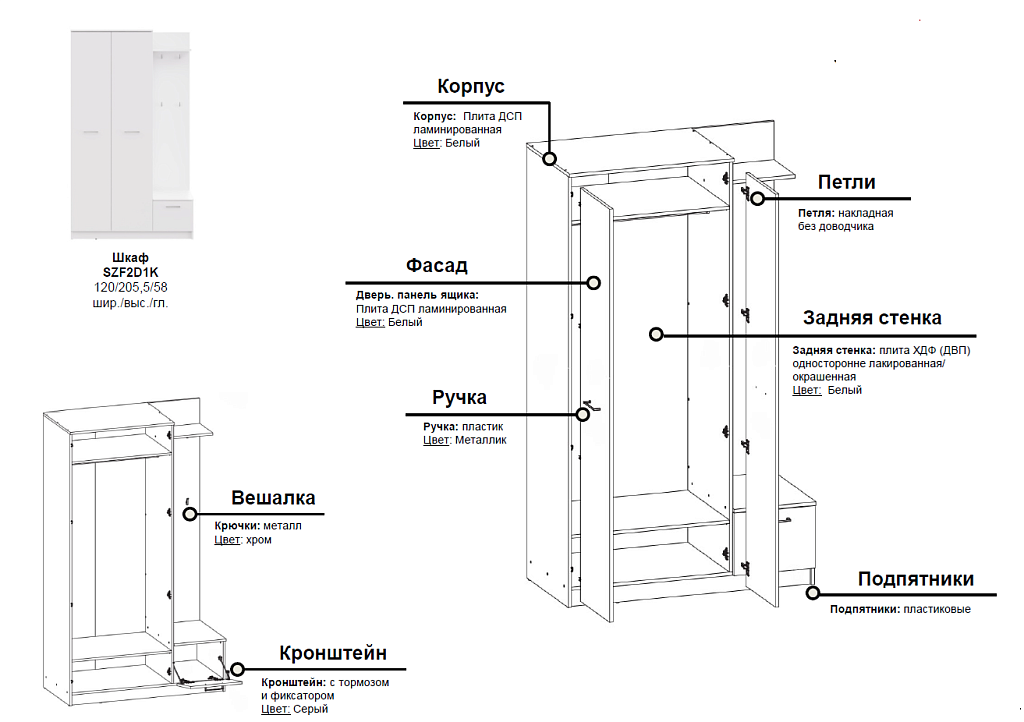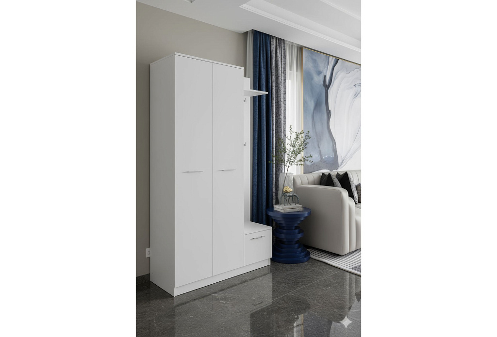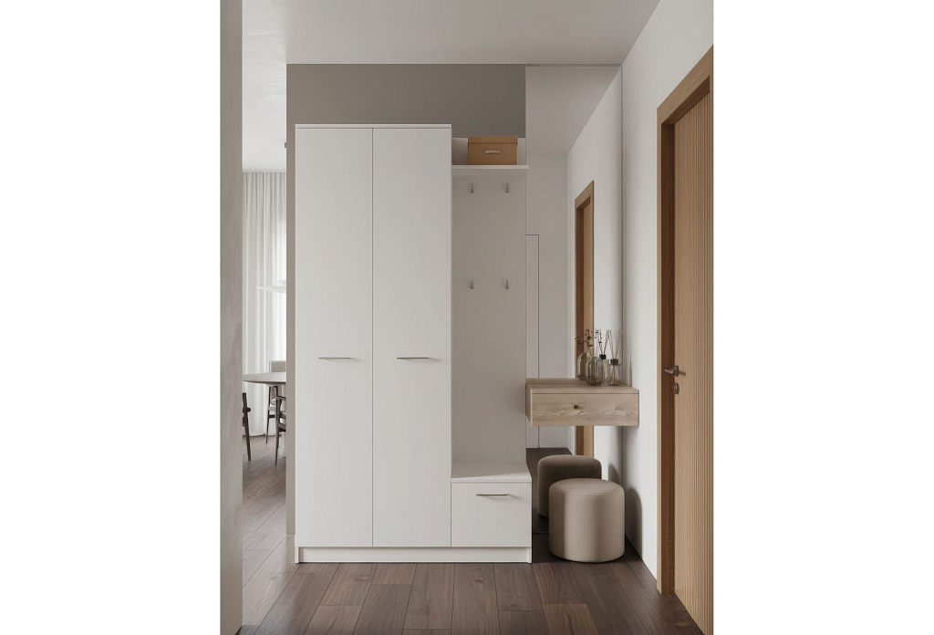 В этом вам поможет шкаф из коллекции «ADA». Грамотный дизайн шкафа позволит вместить верхнюю одежду, обувь и другие вещи, при этом не загромождая пространство.
