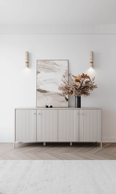 Мягкие линии рифлёных фасадов, закругленные края и нежная цветовая гамма делают пространство ярче, привносят в дом атмосферу домашнего спокойствия.